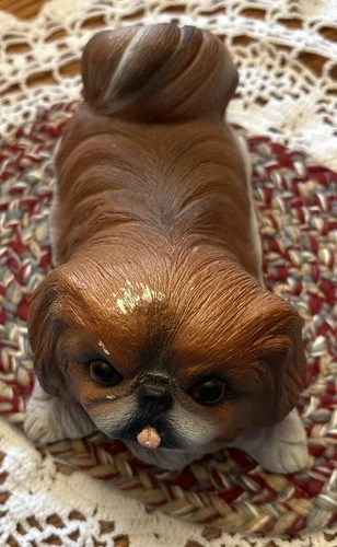 Vintage Pekingese Sculpture Dog Puppy Laying Down Rug Is 7 by 10” By Carole
