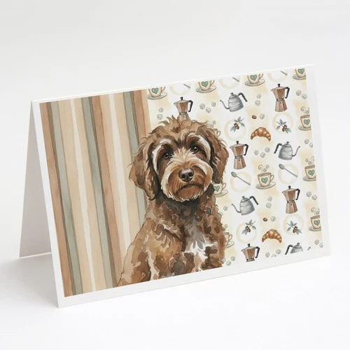 Caroline's Treasures Brown Portuguese Water Dog Coffee Bar Greeting Cards Pack 8