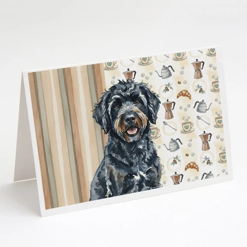 Caroline's Treasures Black Portuguese Water Dog Coffee Bar Greeting Cards Pack 8