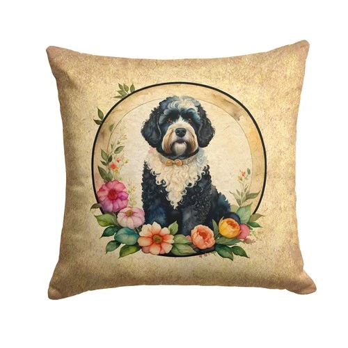 Caroline's Treasures Portuguese Water Dog and Flowers Throw Pillow DAC2188PW1414
