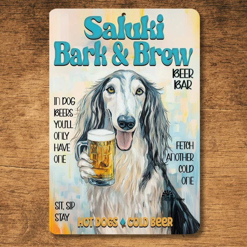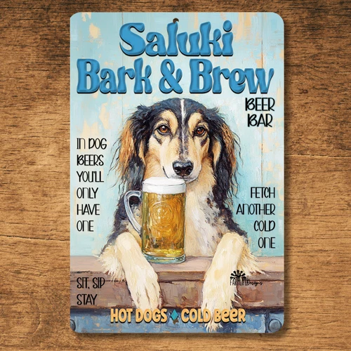 Saluki Beer Bar Sign Bark & Brew dog funny metal tin man cave wall art longhair