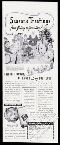 1941 Samoyed sled dog team photo Gaines dog food Christmas vintage print ad
