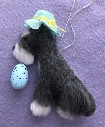 SCHNAUZER for EASTER with BONNET & EGG - Part needle felted DOG