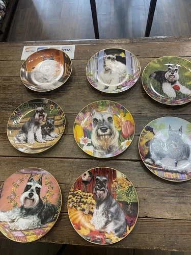 Schnauzer Porcelain Collector Plate Set Dog Breed Decorative Assorted Designs