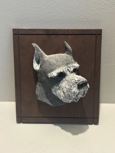 3D Vintage 80s pet dog Kennel Favorites Wall Plaque Schnauzer Hand Painted USA.