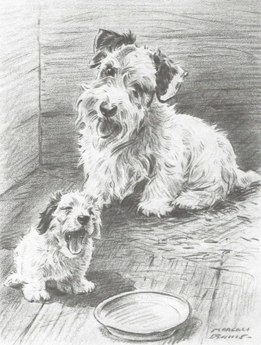Sealyham Terrier w/Pup - CUSTOM MATTED - Dog Art Print - Dennis - 8" x 10"
