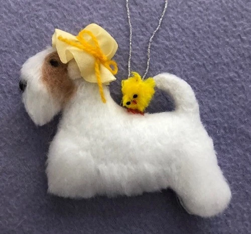 SEALYHAM TERRIER for EASTER with BONNET & CHICK - Part needle felted DOG