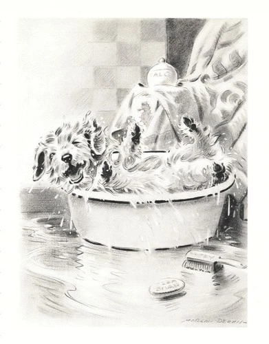 Sealyham Terrier "Bath" - CUSTOM MATTED - Dog Art Print - M. Dennis - 10" x 13"