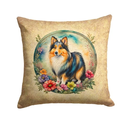 Caroline's Treasures Sheltie and Flowers Throw Pillow DAC2201PW1414