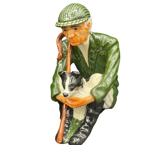 Vintage Shebeg Isle of Man Pottery Sheperd and SheepDog figurine Sandra L rare