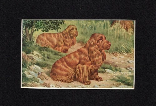 Sussex Spaniel "Duo" - CUSTOM MATTED - 1958 Vintage Color Dog Art Print - 1 ONLY
