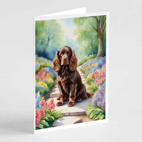Caroline's Treasures Sussex Spaniel Spring Path Greeting Cards Pack of 8