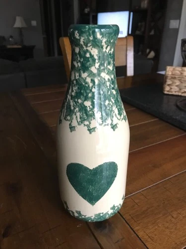 RARE VINTAGE 1980s SPONGEWARE MILK BOTTLE by BUTTERMILK ACRES STONEWARE 10” TALL
