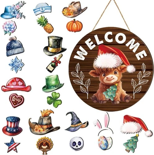 Farmhouse Highland Cow Wooden Door Decor – Easter Magnet Sign, Perfect H