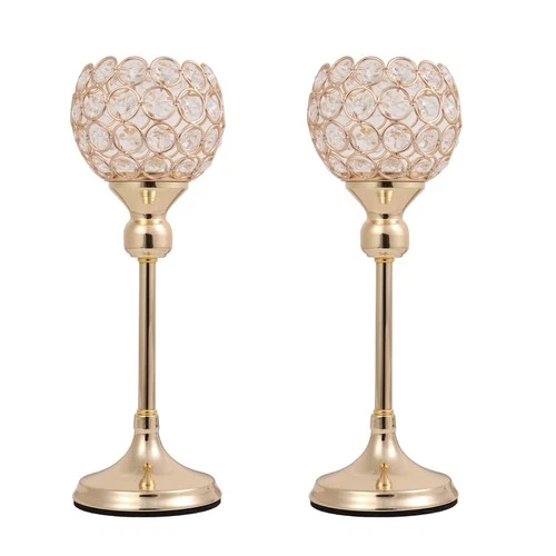 Vidisan Gold Crystal Tealight Candle Holders, Set of 2, Pillar Candle Holders