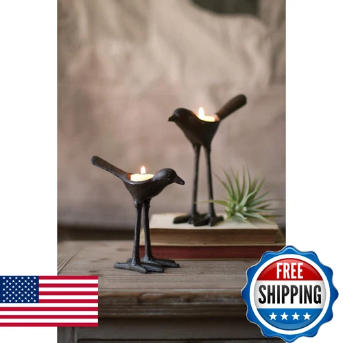 Kalalou Cast Iron Bird Tea Light Holders (Set of 2) - Brown