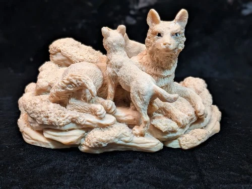 Handmade Hand-Carved Wooden Coyote Figurine Set Decorative Collectibles Display