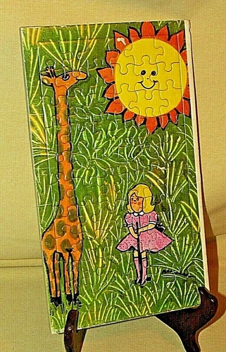GIRAFFE PUZZLE FRAME TRAY MONAHAN LITTLE GIRL PINK DRESS SUN SUNSHINE VINTAGE.