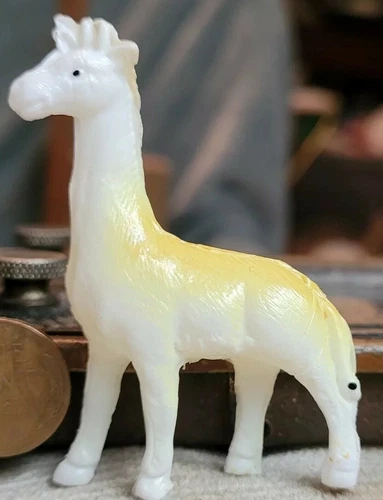 Vintage yellow GIRAFFE plastic hollow toy figurine