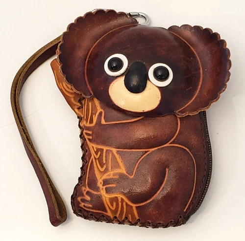 ART Koala Bear Change Coin Purse Leather Pouch Zippered Folk Wristlet Wallet