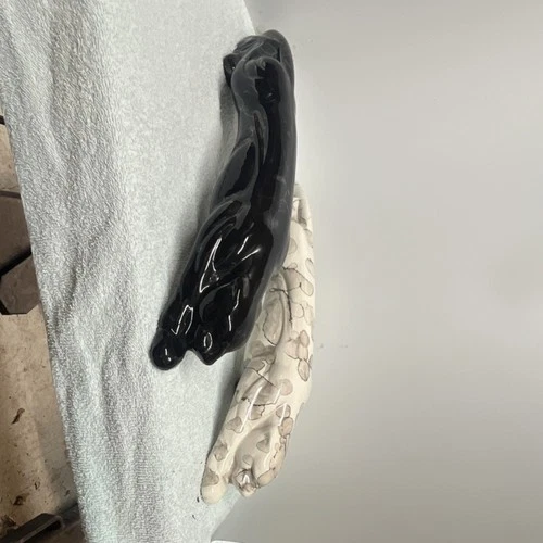 Ceramic Panther Figurines Set of 2 Black and Marbled White