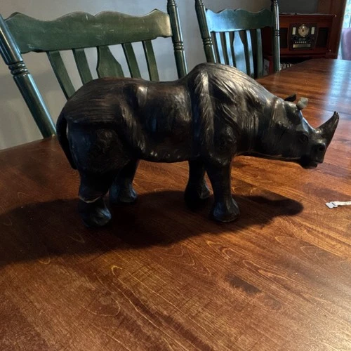Leather wrapped Rhinoceros Figurine Sculpture Dark Finish Collectible