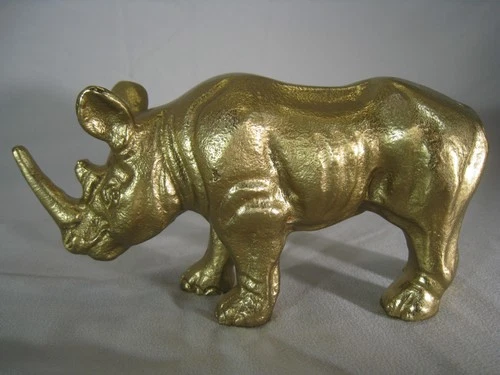 Gold Rhinoceros Statue Heavy Metal 6 Inch Animal Figurine Decorative Art Decor