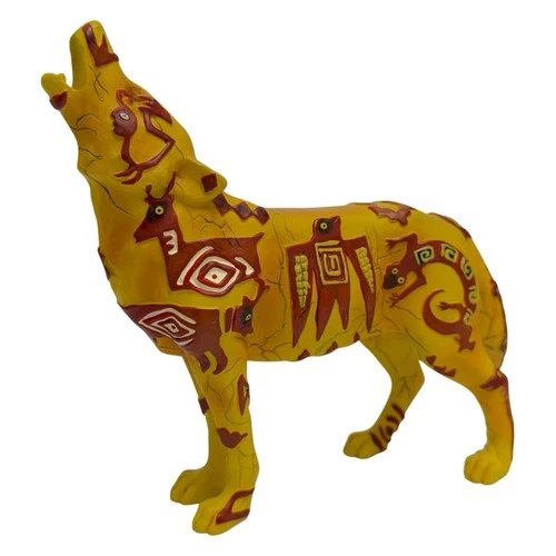 Vintage 2006 Call of the Wolf Figurine Pattern Wolf Tribal Art Westland Giftware