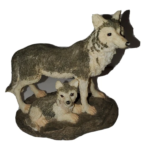 Wolf Figurines 3 Statue Resin Mom & Baby Pair Howling At Moon 4.5" Table Shelf