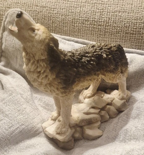 Vtg 1988 Sticker 1980 Carved Castagna Howling Wolf Painted Resin Sculpture