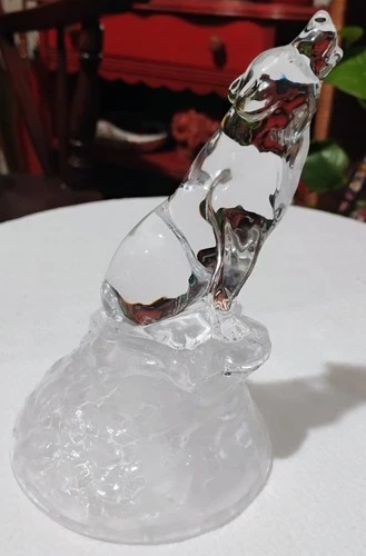 Vintage Cristal D'Arques France 24% Lead Crystal Howling Wolf Frosted Base