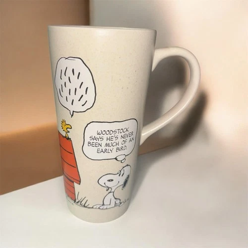 Hallmark Peanuts Snoopy & Woodstock Mug Cup Ceramic 16 oz Tall With Lid 7 In