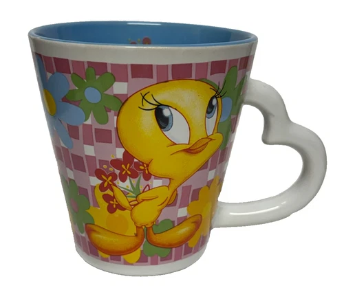 Tweety Bird Heart Handle Mug Warner Bros Pink & Flowers Vintage Style Coffee Cup
