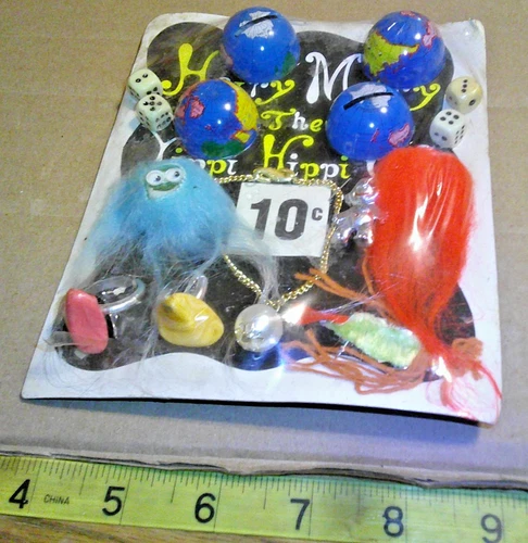 Vintage 10c display card harry mary the yippee hippi girl rings toys etc #jd865