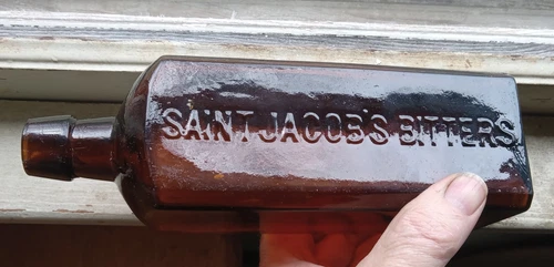 SAINT JACOB'S BITTERS KY.G.W CO 1870s CRUDE APPLIED LIP BOTTLE SHINY NICE