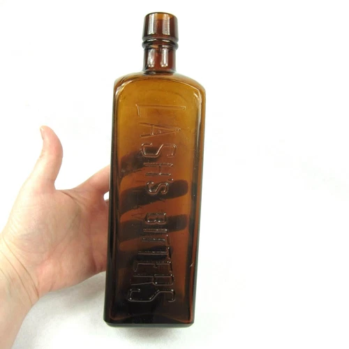 Antique Amber Glass Bottle 9.5" Embossed Lash's Bitters Natural Tonic Laxative