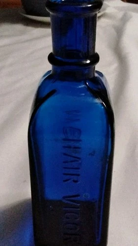 Ayers Hair Vigor Antique Blue Glass Bottle Hair & Skin Care Pre-1900