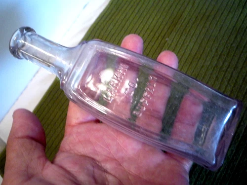 Colgate & Co. Antique Embossed Clear Glass Hair & Skin Care Bottle New York