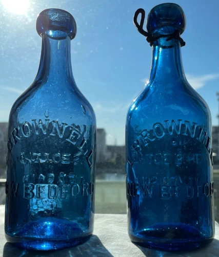 RARE I. BROWNELL NEW BEDFORD MASS. COBALT BLUE BLOB TOP SODA WITH CLOSURE NICE!