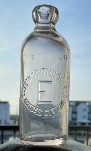 SCARCE ELECTRIC BOTTLING WORKS, KANSAS CITY, MO. HUTCHINSON SODA BLOB CLEAR !