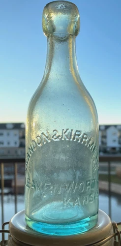 VARIANT BRANDON & KIRRMEYER LEAVENWORTH KANSAS BLOB TOP SODA MINERAL WATER AQUA