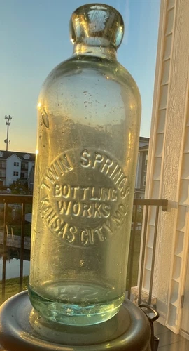 NICE TWIN SPRINGS BOTTLING WORKS KANSAS CITY MO. HUTCHINSONSODA BLOB AQUA BLUE