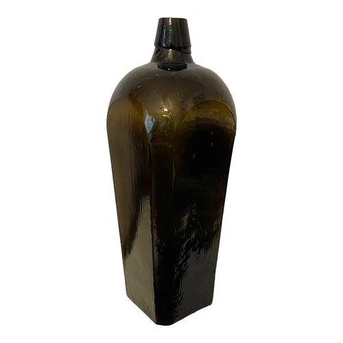 Antique 19th Century Olive Green Gin Bottle – Square Free Blown Glass – 10.5”