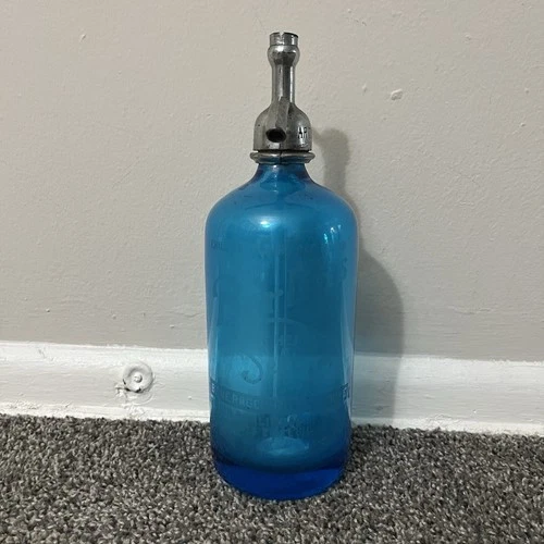 Nice Blue Glass Czechoslovakian Seltzer Bottle New York Seltzer Water Detroit