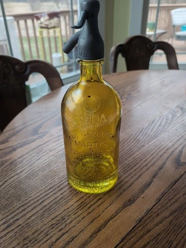 Vintage French Soda Siphon Bottle Amber Glass Martin & Frères Paris 1931
