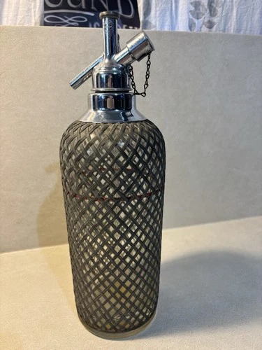 Vintage Sparklets Soda Siphon Seltzer Bottle Wire Mesh Czechoslovakia 13” Tall