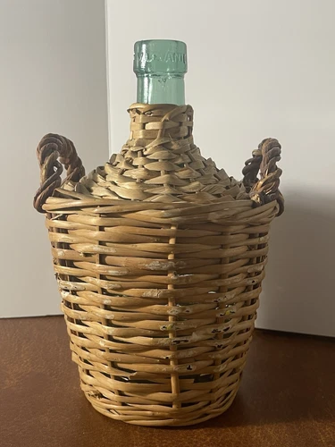 Vinicola Aragona Vintage Woven Plastic Wine Bottle Decanter Green White Spanish