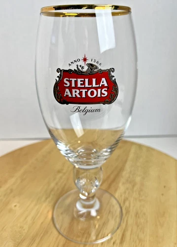 Stella Artois Stem Beer Glass 40cl Gold Rimmed 8'' Home Bar Decor