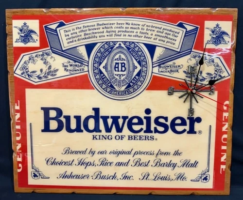 Budweiser King of Beers Shellacked Wall Clock Vintage Beer Label 18" x 15"
