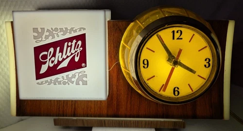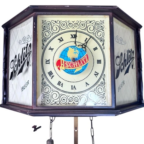 Vintage Schlitz Beer Lighted Pendulum Wall Clock Bar Advertising Sign Globe Logo